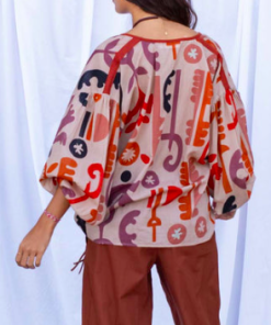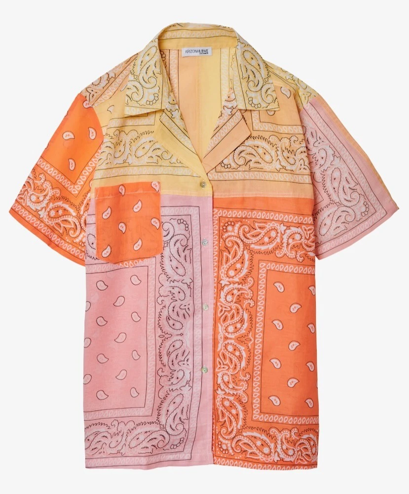 Chemise manches courtes en patchwork de tissus bandanas véritables multicolore.