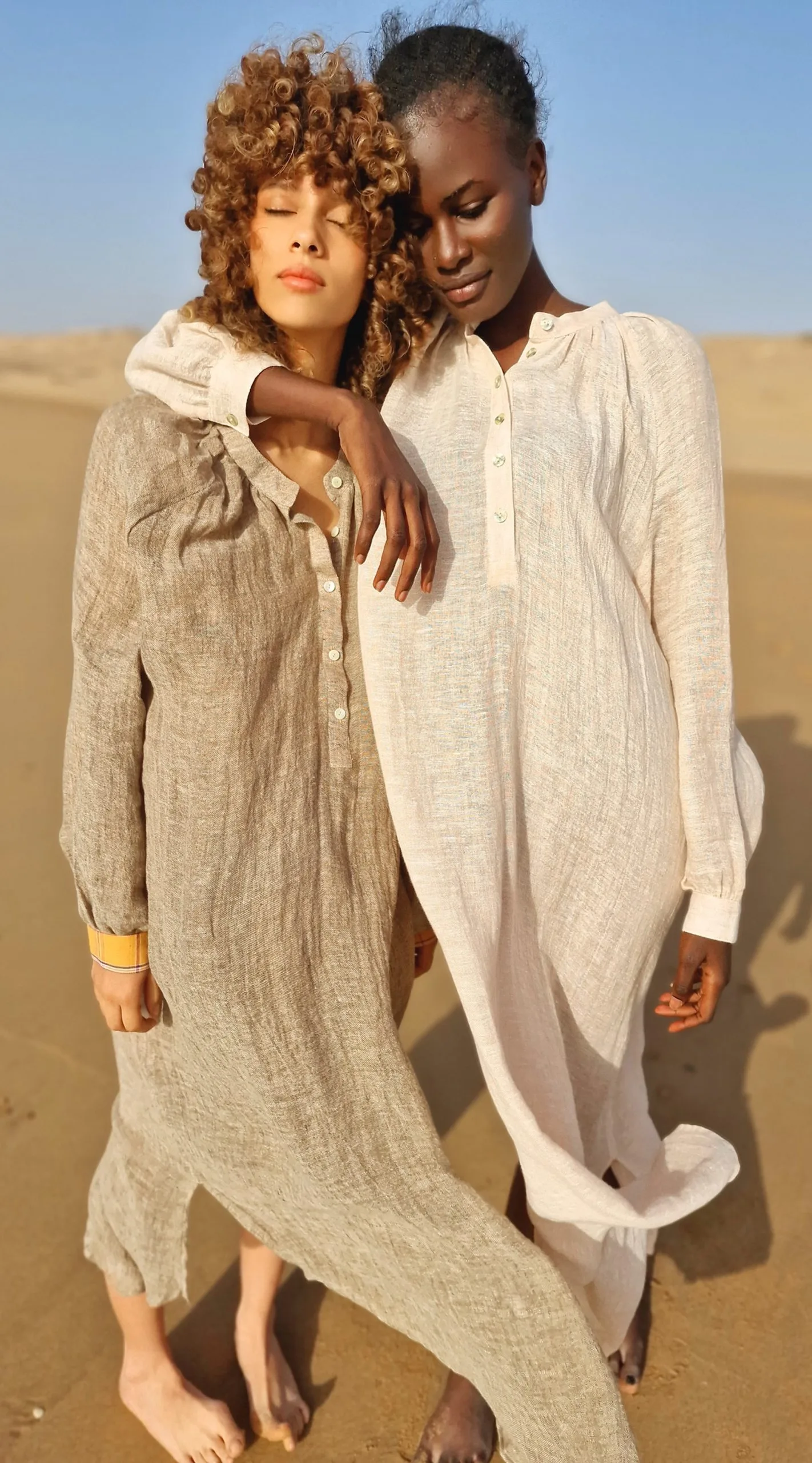 LINEN blouse CLARAMONTE Robe ample en lin de couleur khaki pour un look aérien et frais.