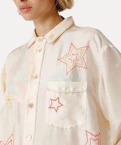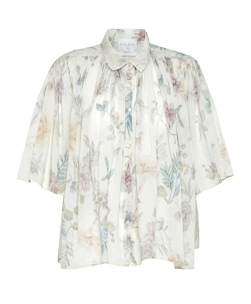 Chemise en voile de coton et soie imprimé floral. Fond écru et fleurs pastels