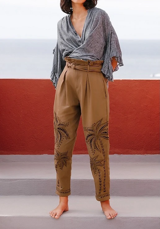 DALMA Pantalon Mes Demoiselles… Paris Pantalon en coton brodé coloris olive. Coupe resserrée en bas, ceinture à nouer. Composition : 100% coton. Livraison offerte en France métropolitaine dès 50€ d’achat
