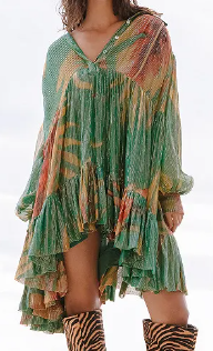 PRUDANCE robe Mes Demoiselles… Paris Robe courte en viscose imprimé floral coloris vert. Coupe ample, manches longues et bouffantes, volant en bas. Légère asymétrie dans le dos. Composition: 95% viscose, 5% lurex. Livraison offerte en France métropolitaine dès 50€ d’achat