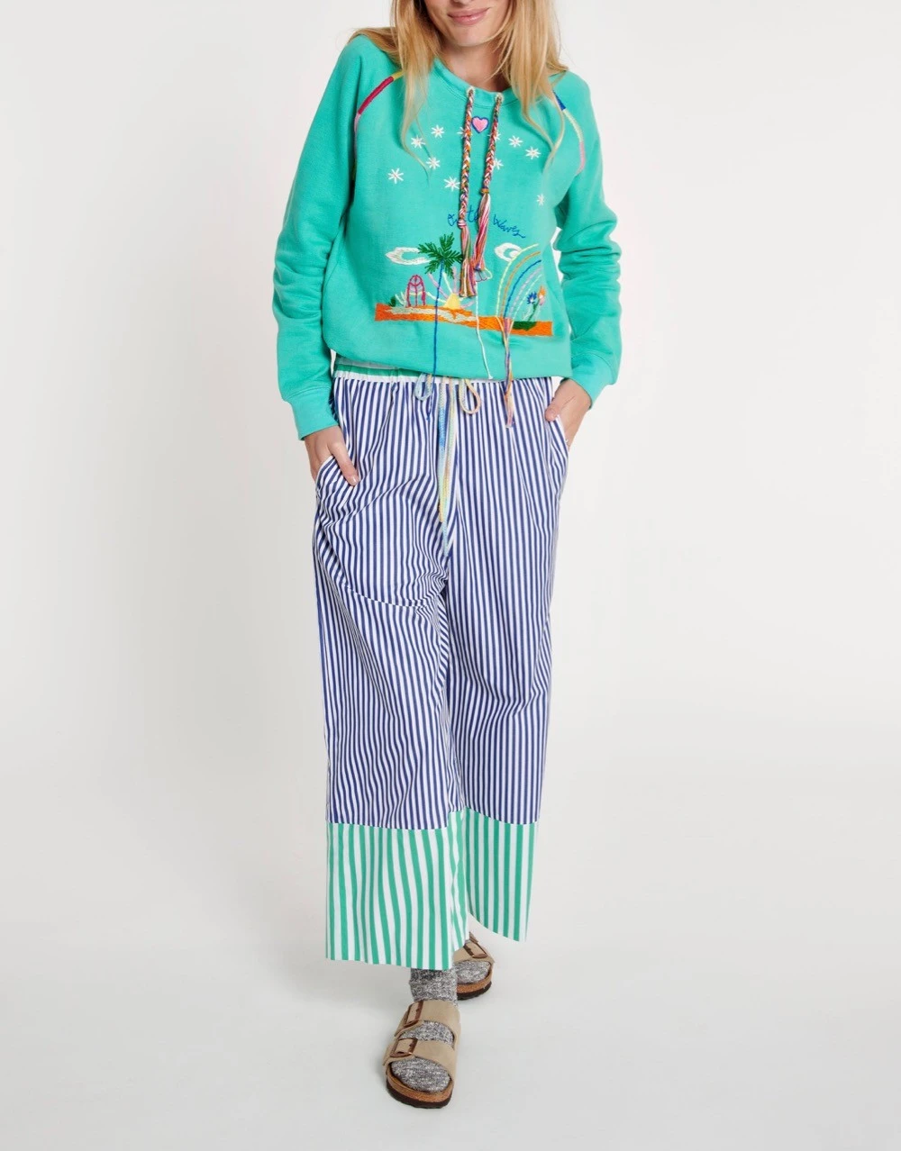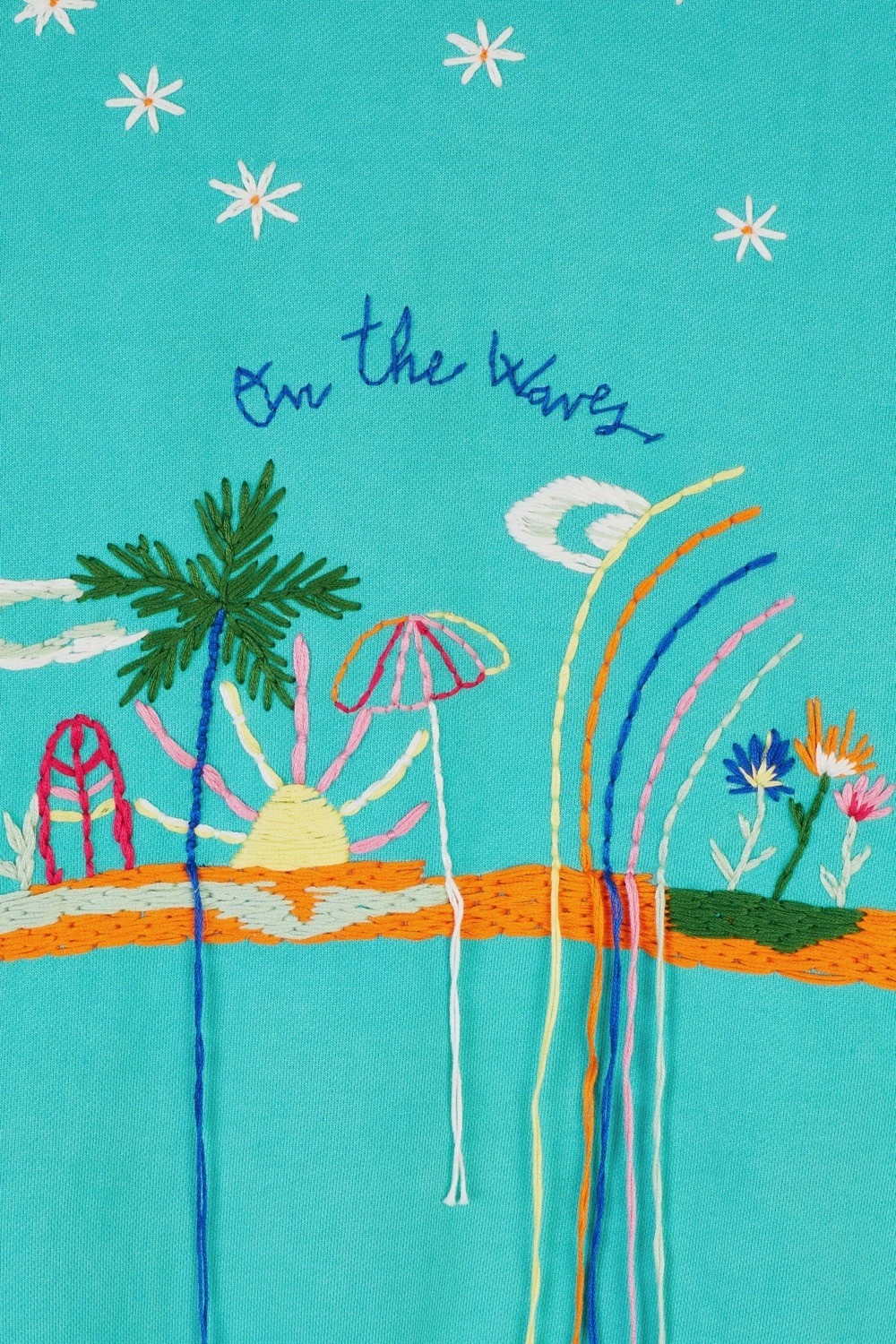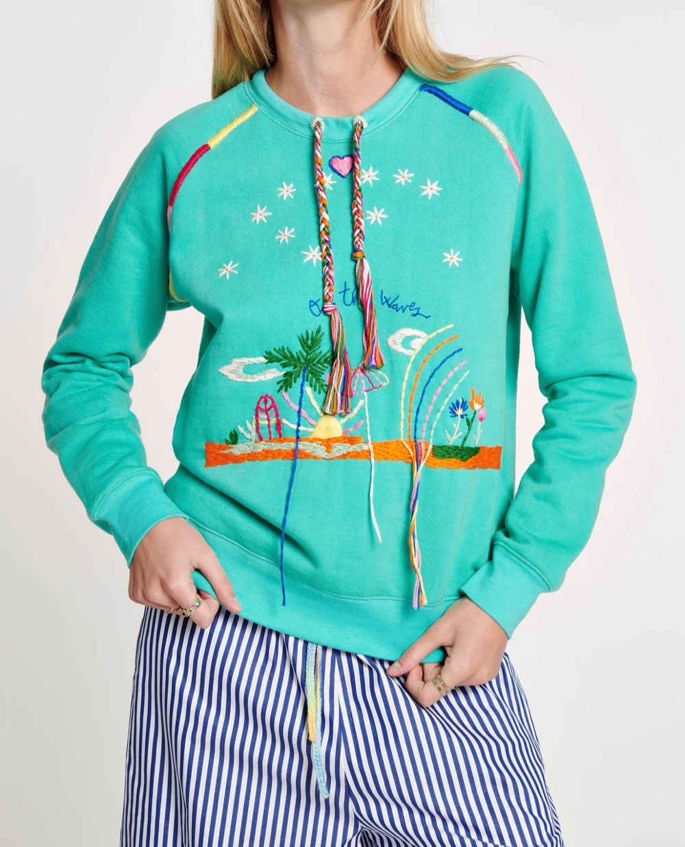 Sweat brodé coloris aqua.