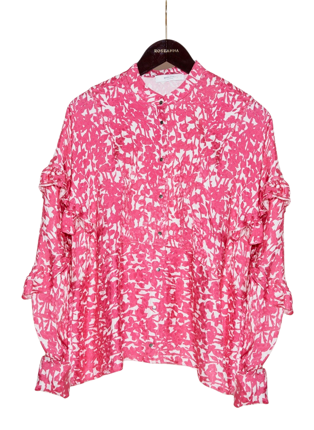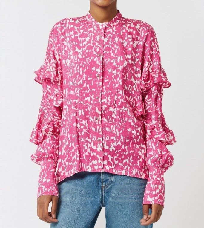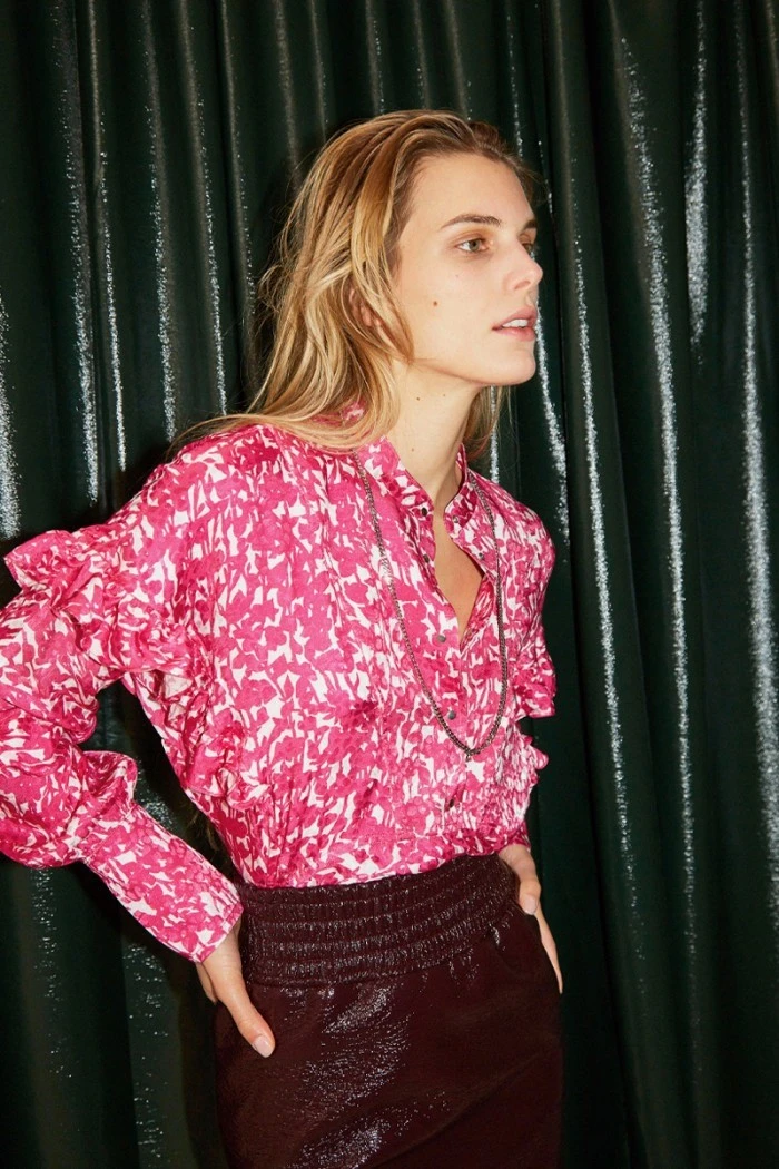 Chemise Roseanna réalisée dans jacquard fluide de viscose, imprimé exclusif dessiné par Roseanna, tissé en Italie, coloris rose magenta