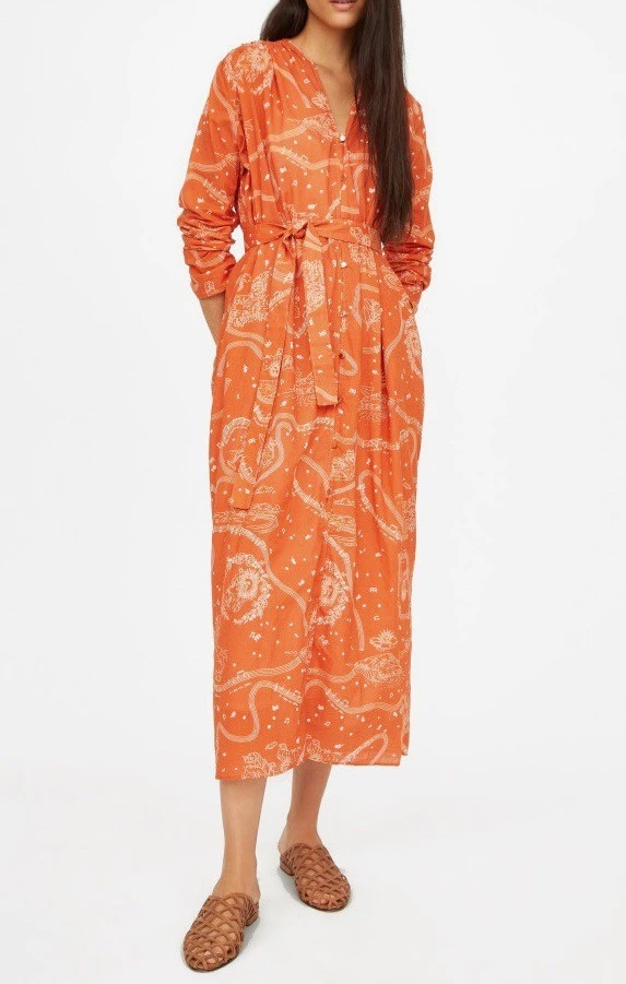 Robe mi longue en coton flamme à imprimé exclusif Roseanna.